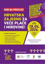 pozivamo vas na prosvjed pod nazivom „Hrvatska zajedno za veće plaće i mirovine,“ koji će se održati u Zagrebu, na Trgu bana Josipa Jelačića, 18. travnja 2026. godine u 12:00 sati u organizaciji reprezentativnih sindikalnih središnjica: Nezavisnih hrvatskih sindikata (NHS), Saveza samostalnih sindikata Hrvatske (SSSH) i Matice hrvatskih sindikata (MHS) te Sindikata umirovljenika Hrvatske (SUH). -